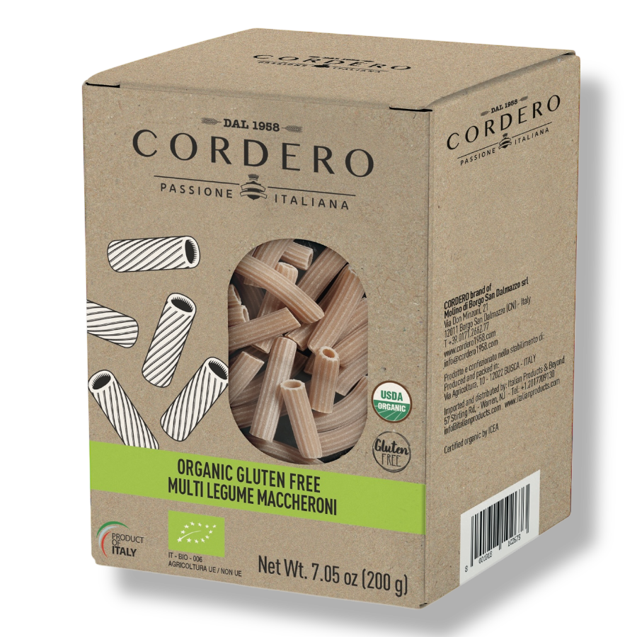 Cordero Organic Gluten-Free Multi Legume Maccheroni offers a flavorful and nutritious twist on traditional pasta. Expertly crafted from a blend of lentil, chickpea, pea, and bean flours, this pasta is rich in plant-based protein and fiber, making it a smart choice for health-conscious and gluten-free diets.