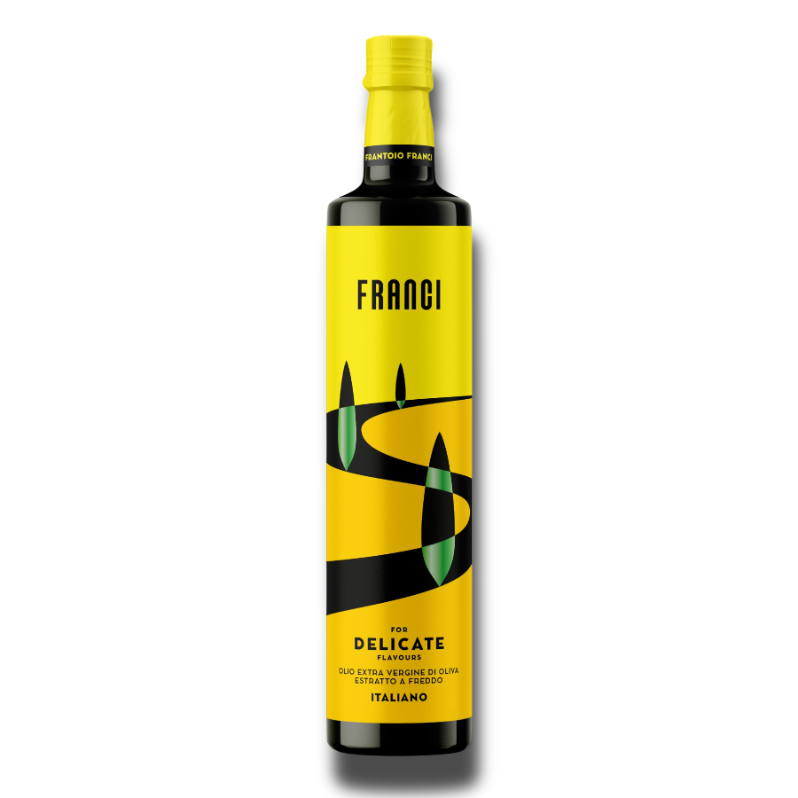 Frantoio Franci from southern Tuscany was founded in 1958 by Franco and Fernando Franci. Georgio Franci has now been leading the company forward, and he without a doubt is one of the most acclaimed names in Extra Virgin Olive Oil in the World. He is an incredibly skilled blender and is thoroughly committed to making high quality olive oil, raising the standards of the industry to success. Farming 65 ha of Olive groves around Montenero, Franci for 'Delicate flavors' is produced from mainly olives of Frantoio variety. Color: Yellow with green reflections. Fine with elegant notes of artichoke, fresh herbs and almond. Broad taste with notes of celery, artichoke, thistle and sweet almond on the finish. Bitter and spicy harmonic. Fruity: Light
